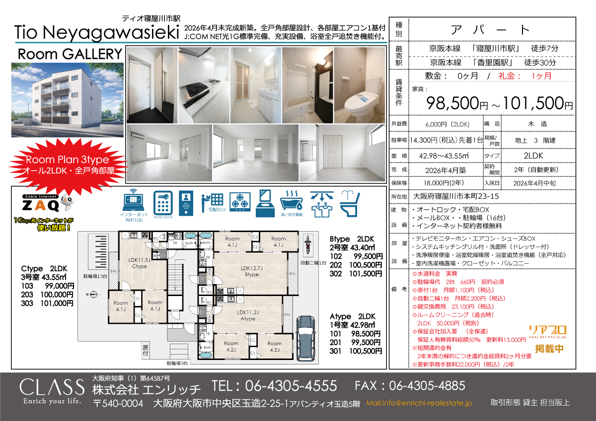 | 駐車場 | 14,300円空有 先着1台普通車 |